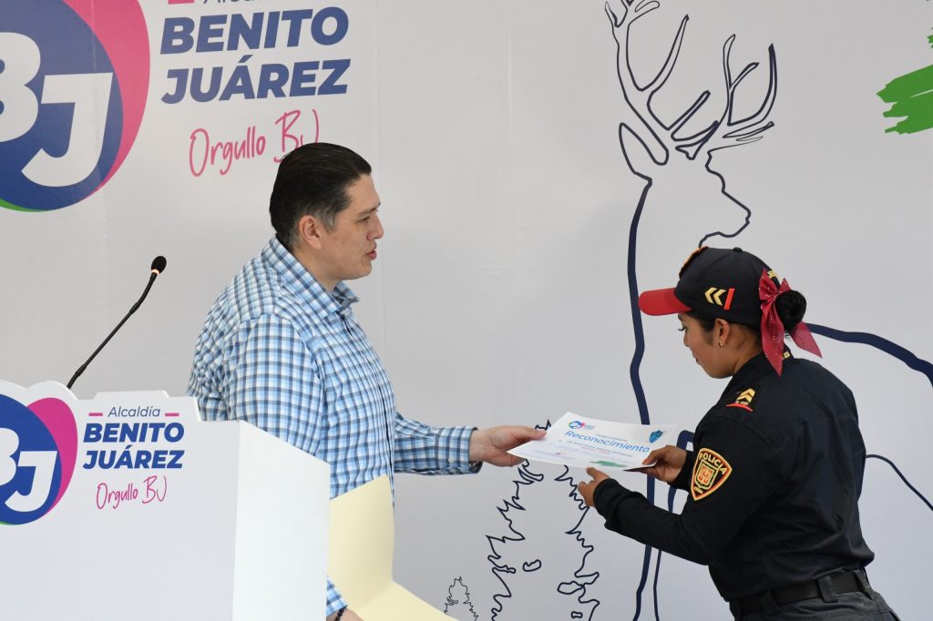 El alcalde Luis Mendoza anunció que el próximo año regresará el apoyo económico para todas las fuerzas públicas de seguridad en la alcaldía Benito Juárez, con el cual se respalda, reconoce y dignifica la labor policial, misma que los elementos adscritos a la demarcación llevan con orgullo en beneficio de una sociedad más segura.