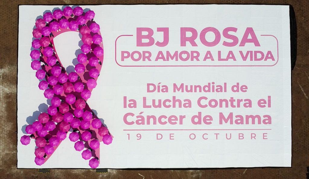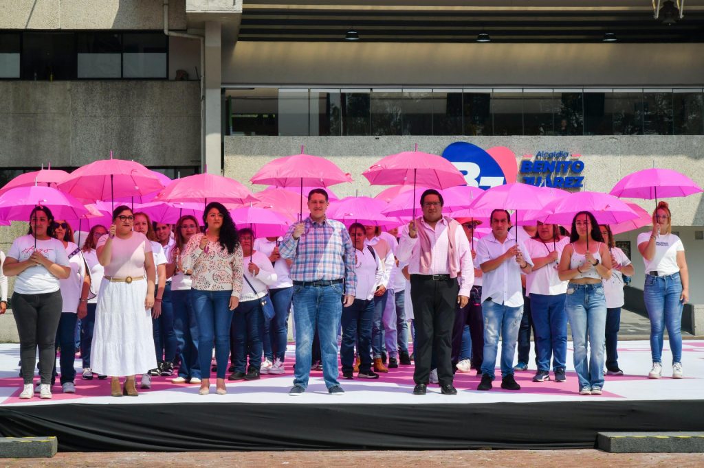 En la explanada del edificio principal, 78 trabajadores de diversas áreas participaron en un performance, donde se creó un enorme moño rosa, con el cual, la alcaldía Benito Juárez se sumó a esta conmemoración, con la finalidad de visibilizar la importancia del auto cuidado, la detección temprana y apoyar a quienes luchan contra este padecimiento