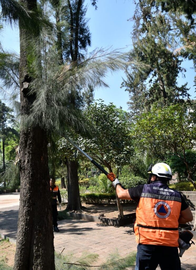 Como parte de esta intervención se realizaron trabajos de poda y mantenimiento de áreas verdes, destacando el retiro de tres árboles muertos en pie que representaban un riesgo para vecinos y visitantes. Asimismo, se llevó a cabo la limpieza de bancas, áreas comunes y la zona de juegos infantiles.